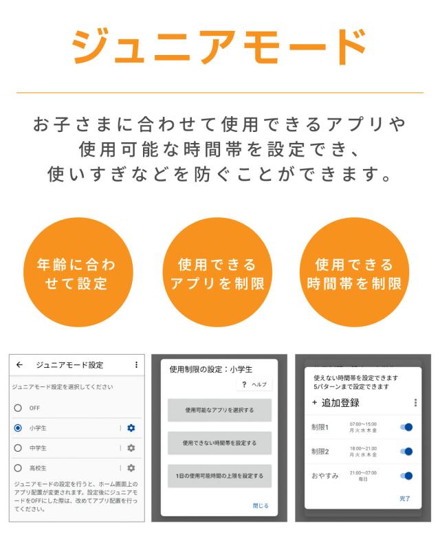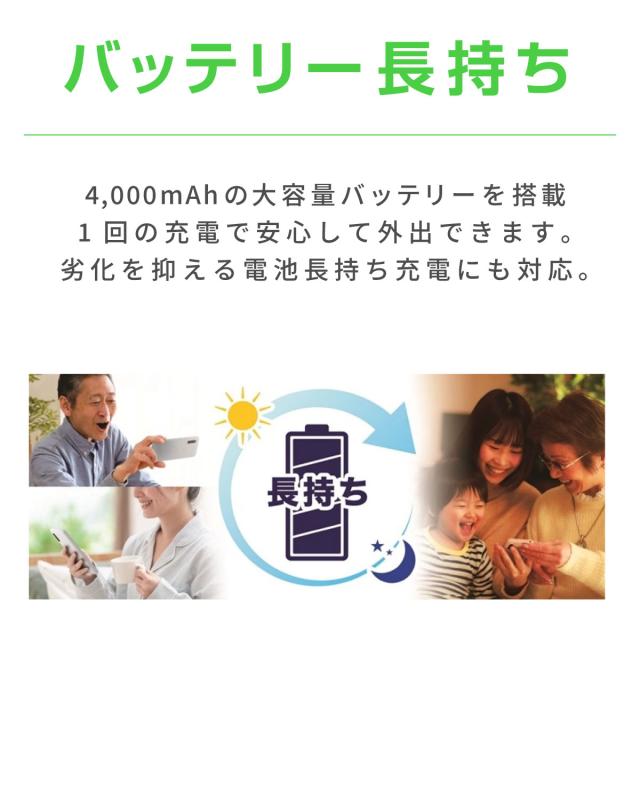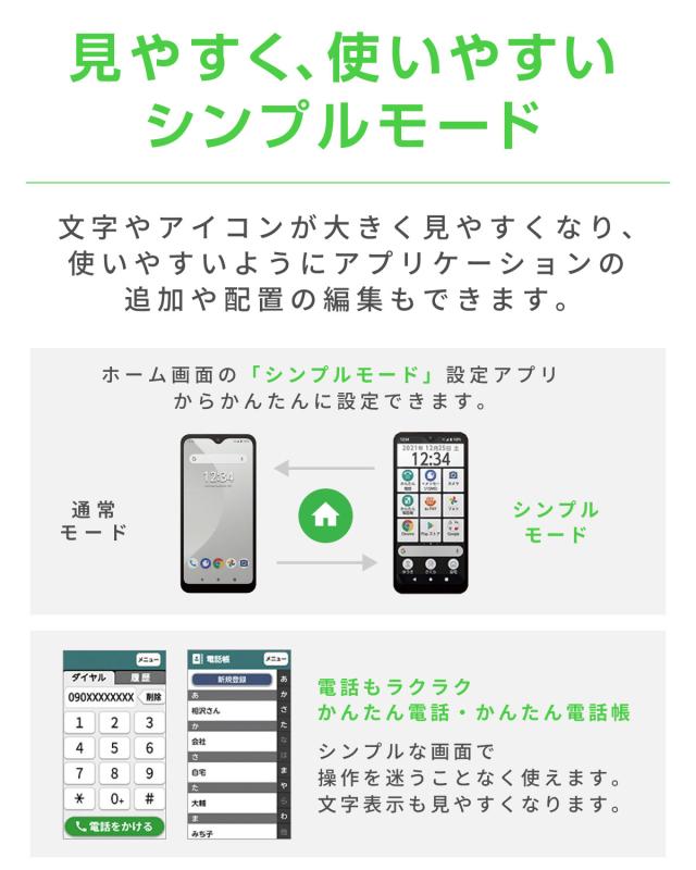 | 【1】arrows Weはあんしん・安全にお使いいただけるスマートフォンです。 迷惑電話対策機能および還付金詐欺対策機能の標準搭載などが評価され、公益財団法人 全国防犯協会連合会が推奨する「優良迷惑電話防止機器」(優良防犯電話)に認定されました。 【2】お子さまにあんしんして持たせられるスマートフォンです。 お子さまの利用範囲が設定できるジュニアモードや防水・防塵・堅牢性、あんしんの緊急時ブザーの搭載により全国子ども会連合会の推奨商品に認定されました。 【3】シンプルモード 文字や表示が見やすく切り替わります。「短縮ダイヤル」をホーム画面にかんたんに配置できます。 |