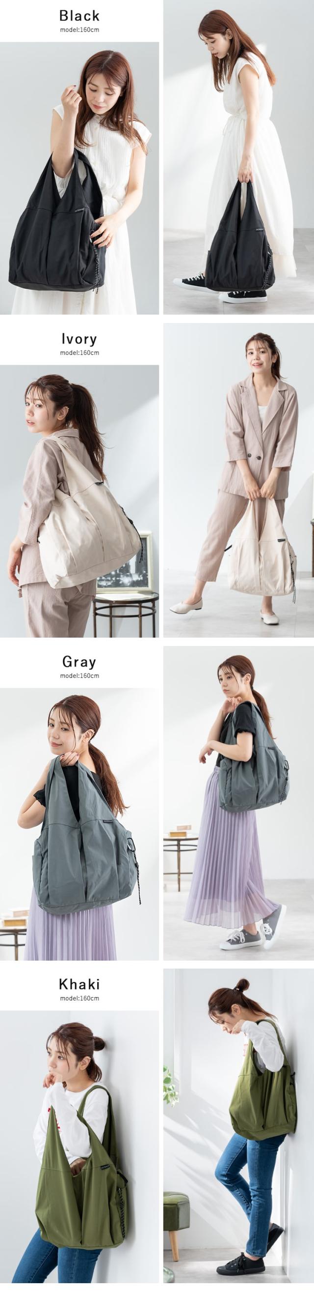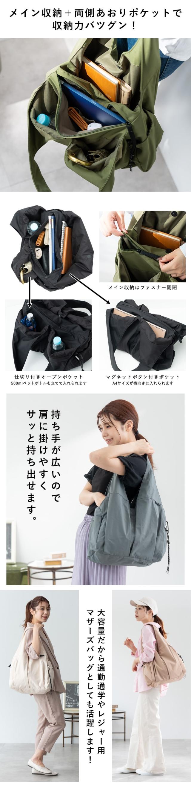 どんなスタイルにも合わせやすいシンプルデザインの大きめバルーントートバッグ。