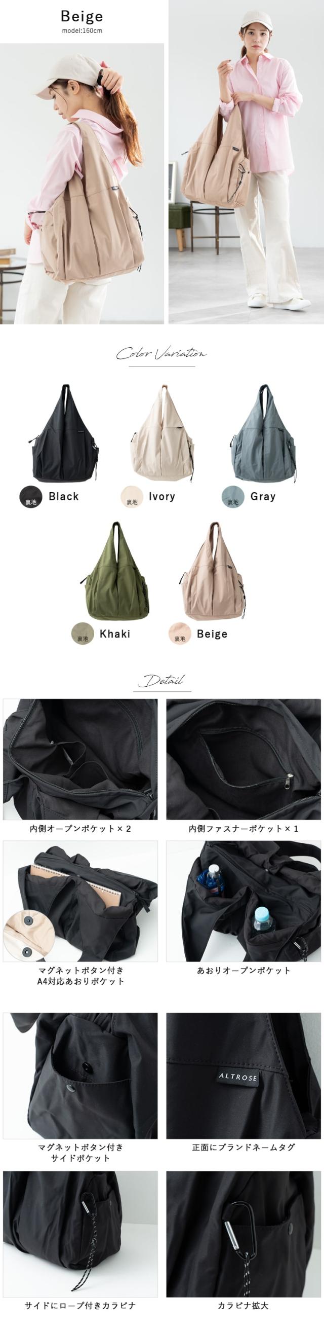 肌に食い込みにくい太めの持ち手で手持ちも肩掛けもしやすいのも嬉しい。
