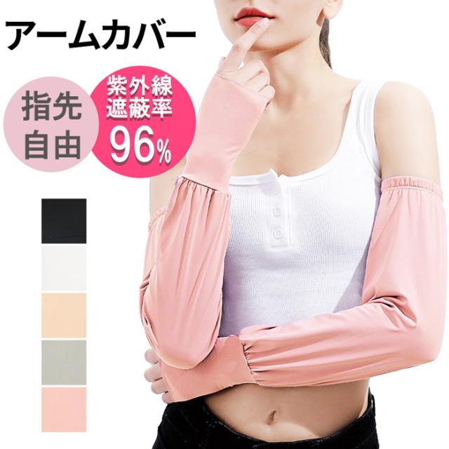 UVアームカバー 日焼け対策 UVカット ロングタイプ ひんやり 指無し 指穴 スマホ シンプル 無地 レディース スポーツ アウトドア ガーデニング 運転 通勤 通学 涼しい 夏 肌ガード 紫外線対策 日除け 腕カバー 黒 白 肌色 灰色 ピンク フリーサイズ za-006