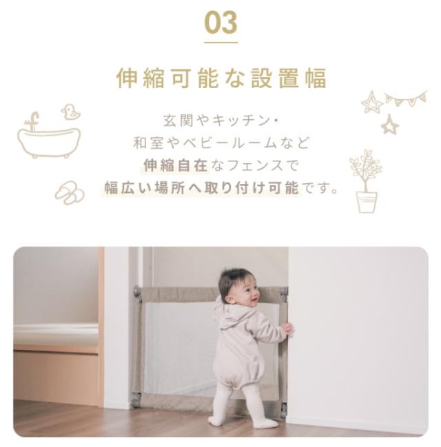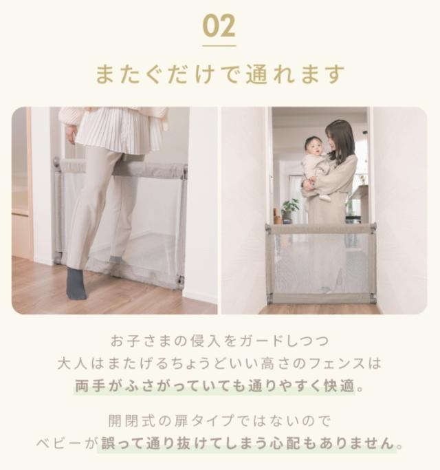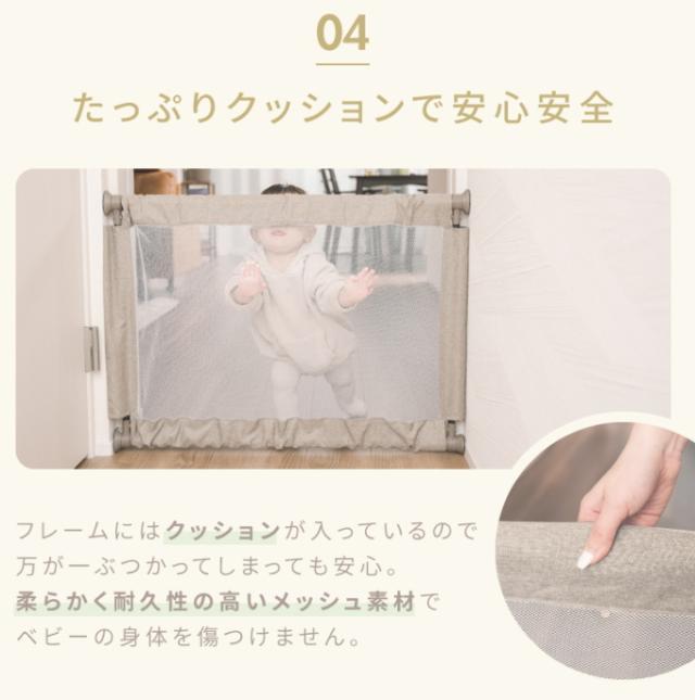 伸縮自在で取付カンタン! ソフト素材でぶつかっても痛くない、ベビーにやさしいセーフティガードです。 ・メッシュ素材で遠くからでもベビーの様子が良く見えます。 ・大人が跨いで通行できる高さなので、扉の開け閉めが必要ありません。 ・伸縮性のあるフェンスで、様々な場所へ取り付けが可能です。 ・上部にはふわふわクッションが詰まっているので、万が一ぶつかっても安心です。 ※メーカー直送品の為、ご注文後のキャンセル、返品はお受けできません。 ※同梱不可のため、送料無料品やメーカー直送品以外と一緒にお買い上げの場合、別途送料が必要となります。 ※沖縄、離島へのお届けはできません。 ■その他のゲート・サークルはこちら↓ ベビー向けゲート・サークル一覧 |