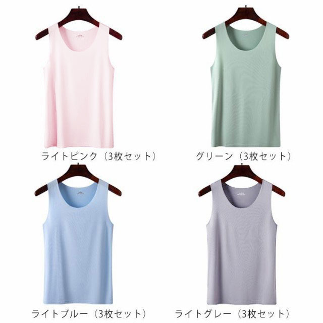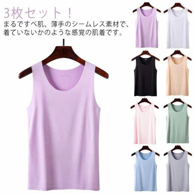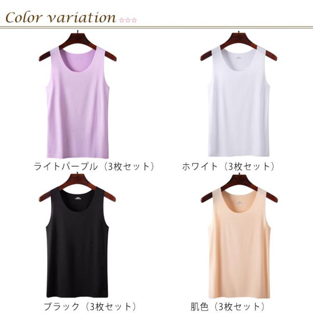 | 3枚セット! まるですべ肌、薄手のシームレス素材で、着ていないかのような感覚の肌着です。 接触冷感&吸水速乾シームレスインナータンクトップ! 全8色x6サイズ 汗をかいてもベタつきにくく、サラッと滑らか、薄くて軽いので 肌に優しい付け心地 接触冷感、吸水速乾のお勧めインナー。 トップスやTシャツ カットソー、チユニックなどのインナーに♪ 締め付け感が少なく、軽く、ラインがアウターに響きにくい使用にしております。 | |