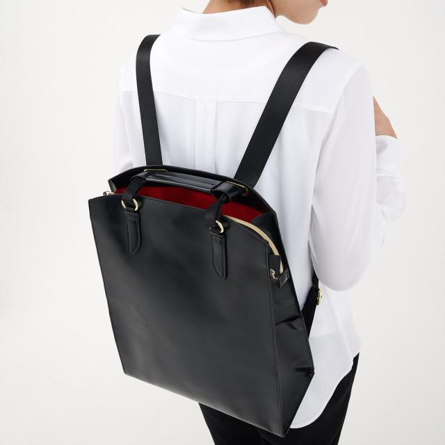 場面に応じて使い分け!きっちりトート、ときどきリュック。きちんと感のあるビジネストートが、場面に応じてリュックに変身!働く女性のための2WAYトート「セオルーbusy」。きちっとした印象&しっかり機能。リュックになる快適トートバッグ。