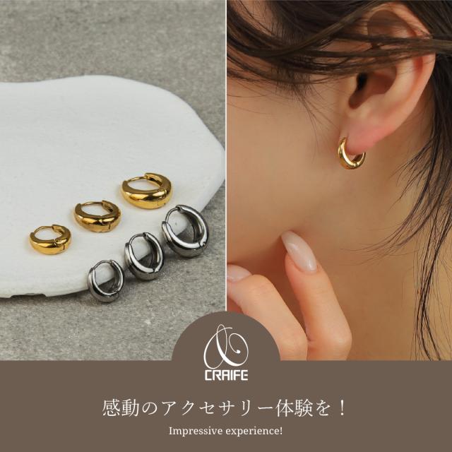 ピアス フープピアス 金属アレルギー対応 18Kコーティング サージカルステンレス キャッチレス レディース 大人 モダン シンプル かわいい エレガント ジュエリー ゴールド シルバー プチプライス高見え CRAIFE