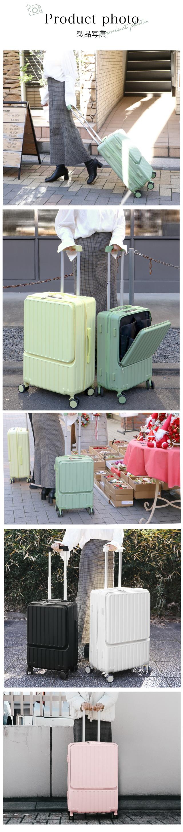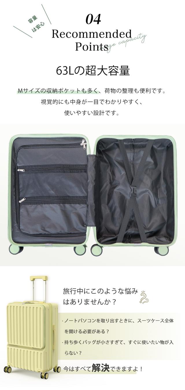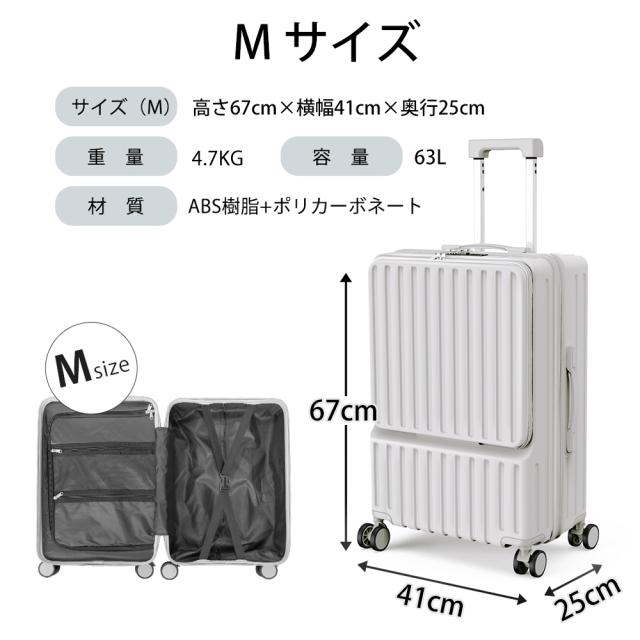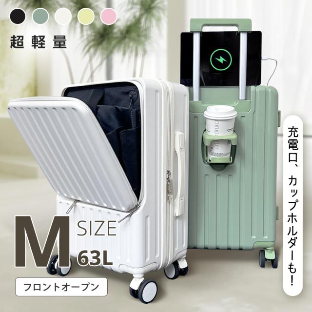 \新色登場!選べる6カラー/スーツケース Mサイズ フロントオープン キャリーケース キャリーバッグ 静音 カップホルダー USB充電ポート 360度回転キャスター 軽量 TSAロック