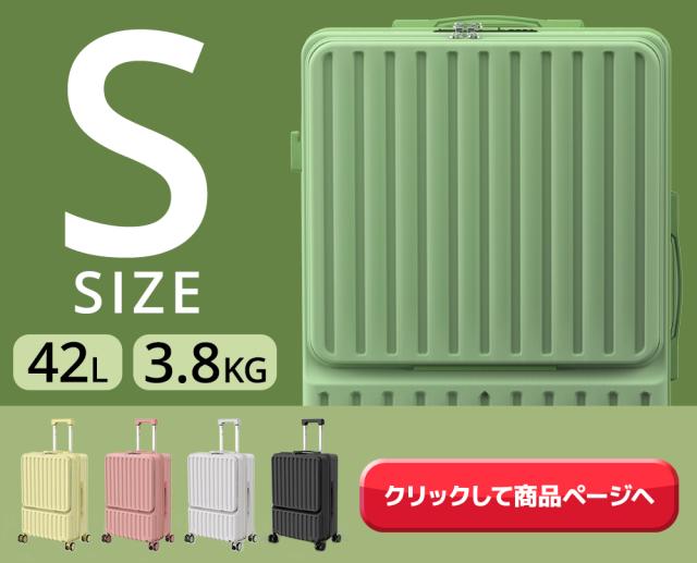 Sサイズ(機内持ち込みOK): 58×36×24cm(重量約3.8kg)、容量約42L(1〜3泊対応)