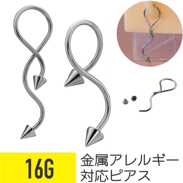ロング スパイラル コーン 16G サージカルステンレス 軟骨ピアス ボディピアス ヘリックス スパイク ツイスト 長め スパイラルバーベル