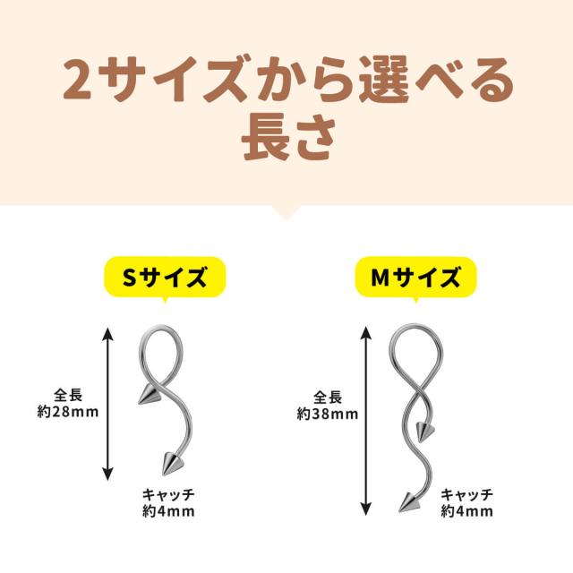 イヤーロブ,ヘリックス,ファーストピアス,セカンドピアスにおすすめのスパイラルバーベルです。