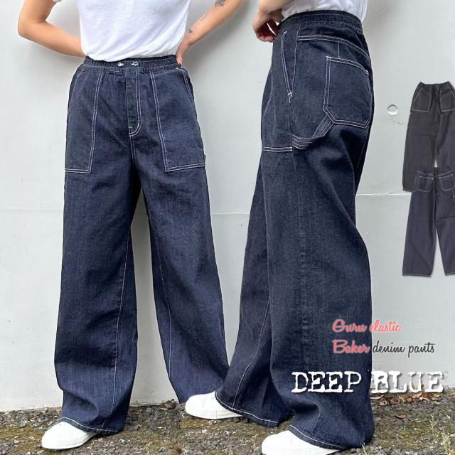 ベイカージーンズ ディープブルー DEEP BLUE ぐるゴムベーカーデニムパンツ ( 72979 ) インディゴブルー デニム バギーパンツ ワークワイドデニムパンツ ワイドシルエット deepblue レディース ボトムス ミリタリー おしゃれ アーベン 普段使い 実用的 日本製