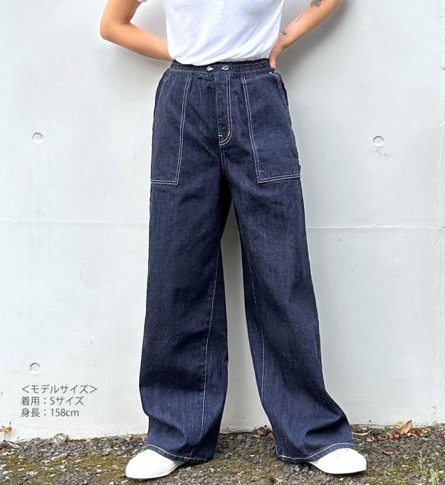適度な厚みのある12オンスデニム生地で仕立てたワイドストレートのベイカーパンツです。