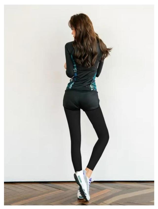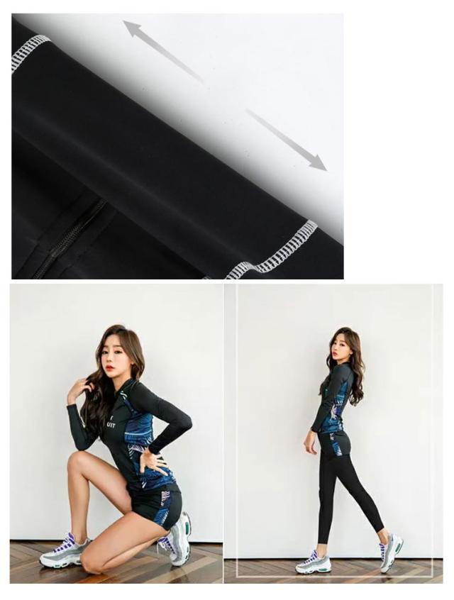 | ・シンプルスポーティー大人フィットネススタイル ・日焼け対策もできる長袖・レギンスのラッシュガード付き。 | |