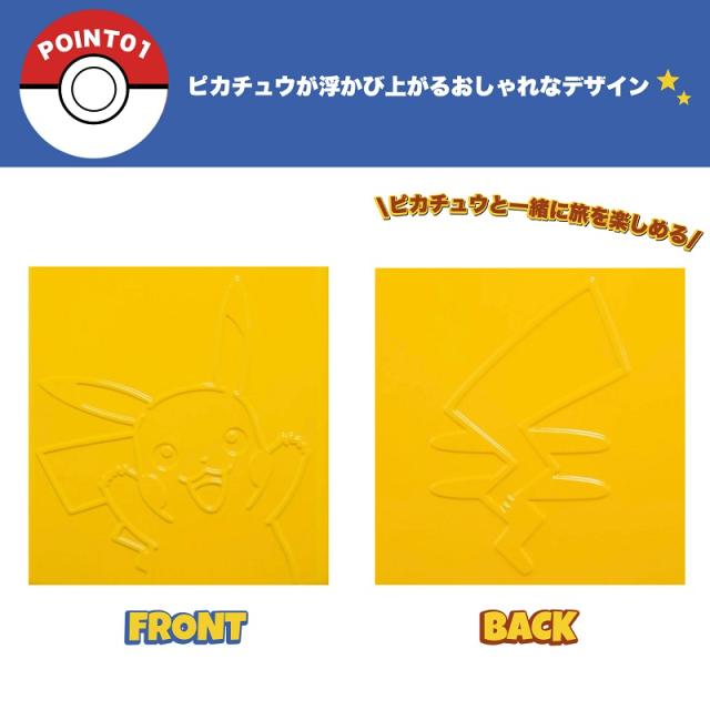 前面は可愛いピカチュウが浮きあがった可愛いデザイン、背面にもピカチュウの後ろ姿がデザインされています。