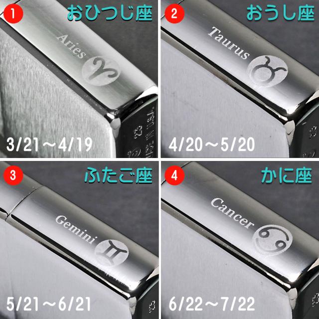 | ZIPPO/12星座彫刻 オイルライター #200ブラッシュクローム 選べる12星座 200ZOD | |