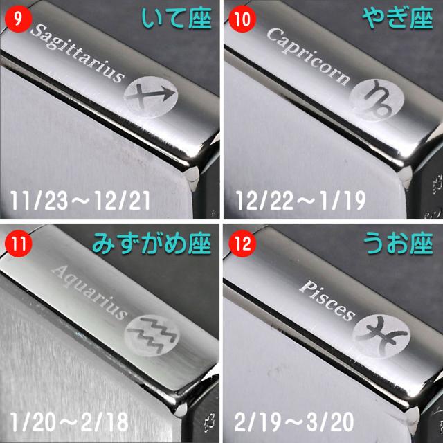クリスマス zippo ジッポーライター 今ならユニット彫刻無料! 12星座彫刻 オイルライター #200ブラッシュクローム 選べる12星座 200ZOD メール便対応