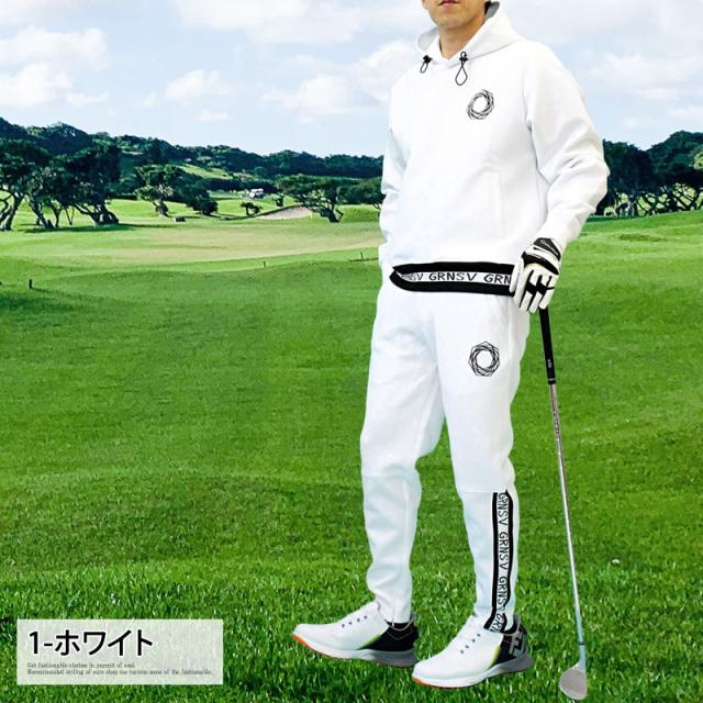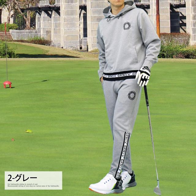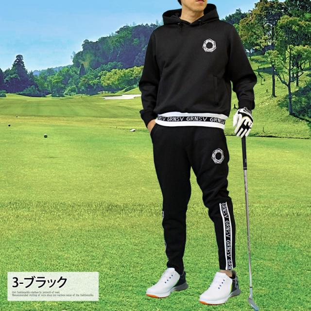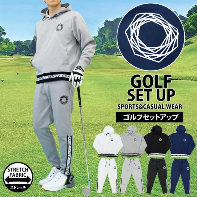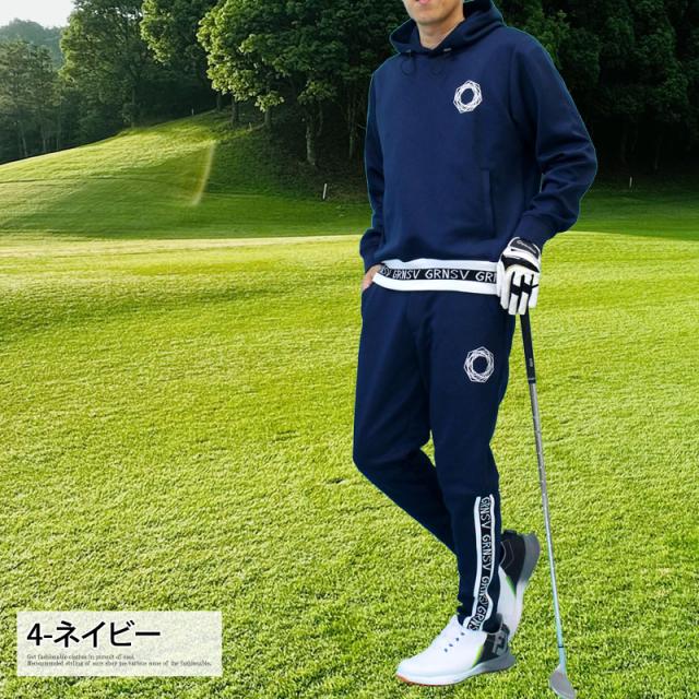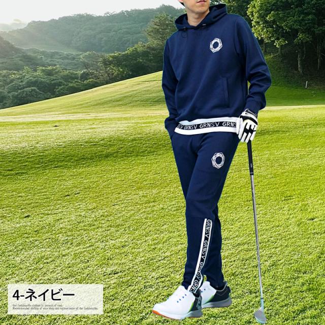 送料無料 ゴルフウェア メンズ 上下セットアップ GIORNO SEVEN ジョルノセブン プルパーカー トップス ゴルフパンツ リブロゴ ブランド おしゃれ 秋冬 春夏