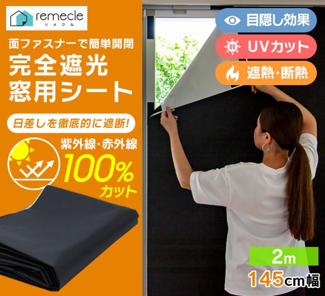 遮光シート 窓 布 完全遮光シート 2m【meru】布 完全目隠し 完全遮光 100% 目隠しシート 黒 遮光シート はがせる 日よけシート 窓ガラス 窓用フィルム UVカット 紫外線カット 西日対策 シート 防虫 省エネ 日差し 紫外線対策 暑さ対策