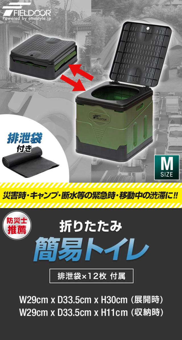 FIELDOOR 簡易トイレ 災害用 非常用 トイレ Mサイズ 折りたたみ ポータブルトイレ 排泄袋つき 携帯トイレ 防災 災害用トイレ 防災グッズ 防災用品 災害対策 停電 断水 防災士監修 介護 アウトドア 渋滞 凝固剤付きセットも 1年保証 送料無料