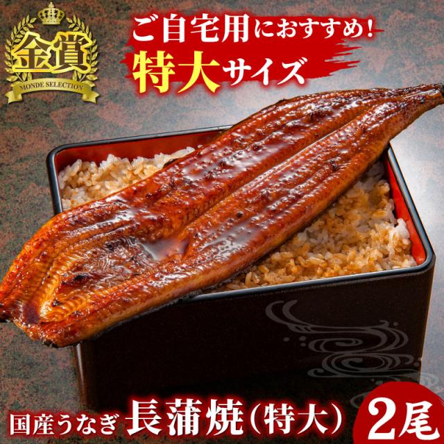 国産うなぎ長蒲焼(特大)2尾セット 送料無料 自宅用 うなぎ ウナギ 鰻 土用の丑の日 丑の日 大容量 お買い得 冷凍 蒲焼き 簡易箱