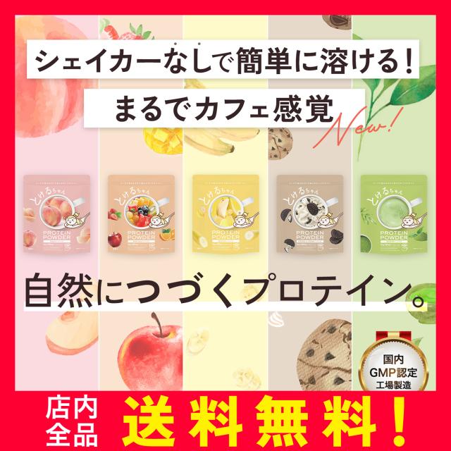 【こだわりの3つのポイント】美味しさ:クッキーの香ばしさとクリームの濃厚さがマッチした、贅沢でデザート感覚の味わいを実現。水でも美味しくお召し上がりいただけますが、お好みで牛乳や豆乳、アーモンドミルクなどで作るとよりコクを感じられます。溶けやすさ:独自の配合により、シェイカーが面倒くさいときでもコップでくるくる混ぜるだけで簡単に溶けるパウダーを実現。泡立ちや粉っぽさを最小限に抑えました。豊富なフレーバー:飽きずに続けられるように、抹茶、バナナ、フルーツミックス、ピーチ、クッキー&クリームの5種類のフレーバーをご用意。