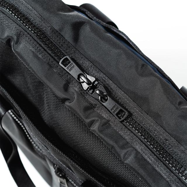 | いまやビジネスバッグの定番となった高いユーティリティ性の3WAYは、リュック、ショルダー、ブリーフと様々な使用シーンに対応。サイズ感、ディティールを調整し、普段使いにも合わせやすいデザインとなっている。メインコンパートメントをL字型で開閉、内装にPCポケットとメッシュポケットを配置。前胴には財布やスマホを収納できるサイズのファスナーポケット2室と靴が入る大きなサブポケットが一室配置。背胴にはトロリーのハンドルが通せるスリット機構を搭載。トロリーバッグに取り付け可能なスリットを用意。出張用途にも対応。従来のA4ブリーフより大き目のサイズ感で、ファスナー素材には滑りの良いビスロンファスナーを採用しています。 |