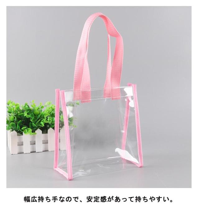 | 幅広い年代層から愛される人気なおしゃれクリアバッグ。 クリアな質感だからこそどんな色のお洋服にも合う万能な素材感。 いつものコーデをワンランクおしゃれにしてくれます。 幅広持ち手なので、安定感があって持ちやすい。 重たい荷物を入れても、腕に食い込みにくいので長時間のお出かけだってらくちん。 誕生日や結婚式のギフトラッピングにも推し活にも大人気! | |