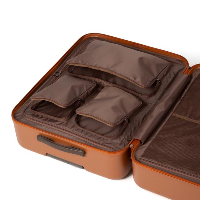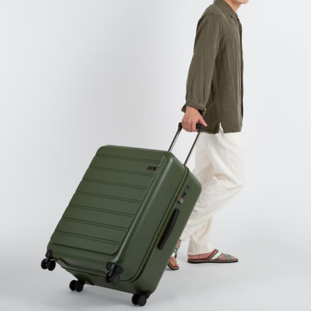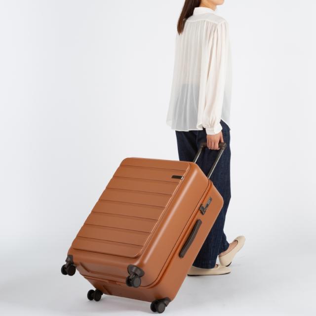 ・角を落とした柔らかなフォルムのスーツケース。