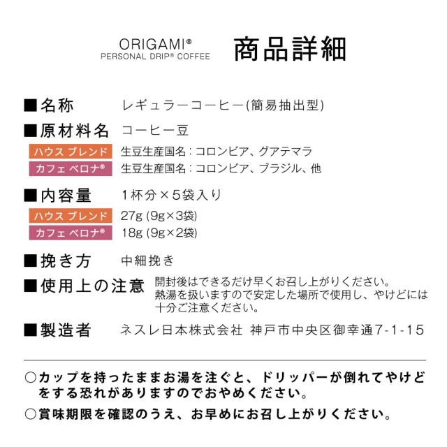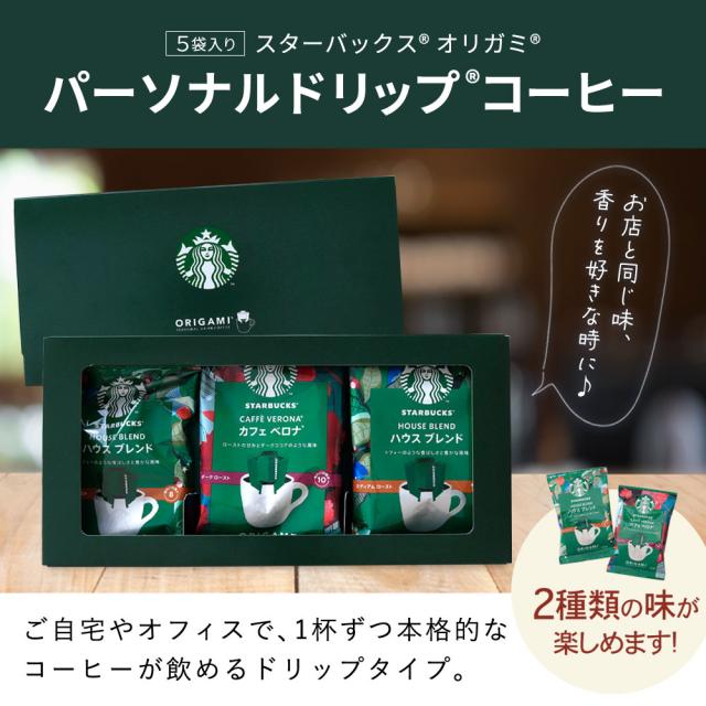 (2) スターバックス オリガミ パーソナルドリップコーヒー(ハウスブレンド×3袋、カフェベロナ×2袋)