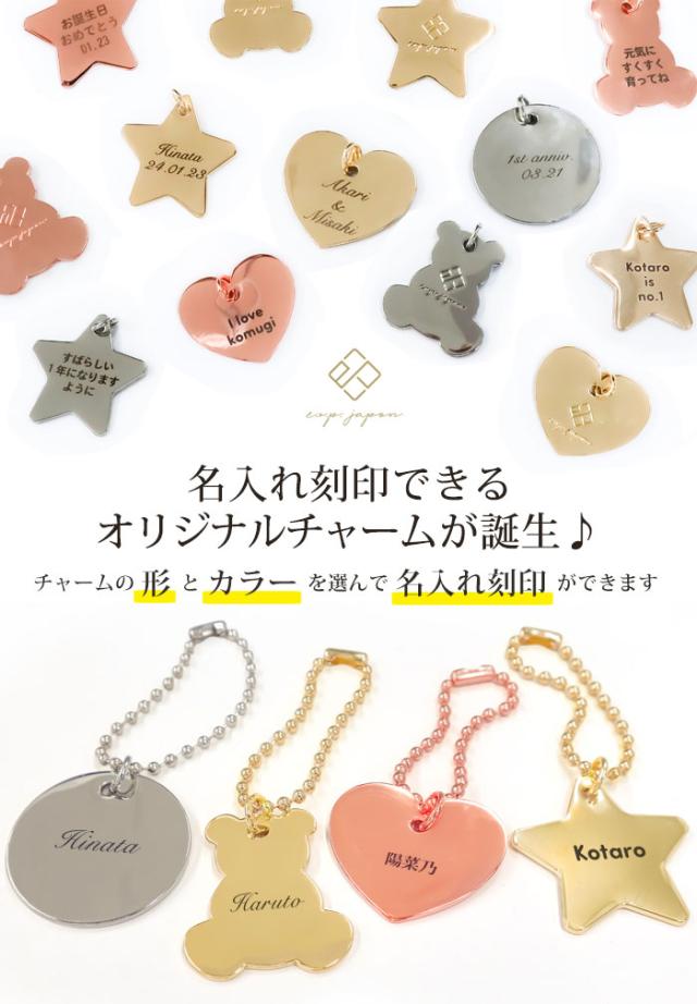 名入れ 刻印 チャーム くま ハート 星 サークル セミオーダー 選べる バッグチャーム ボールチェーン キーホルダー プチギフト 出産祝い 誕生日 プレゼント 赤ちゃん 名前入り おしゃれ オリジナル ネームプレート