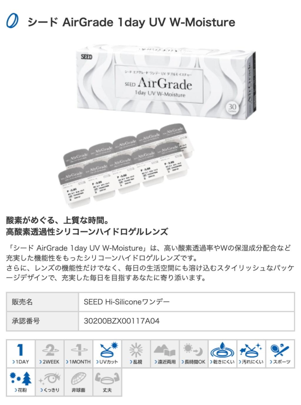 ■販売名:AirGrade 1day UV W-Moisture(エアグレード ワンデー UV ダブルモイスチャー)