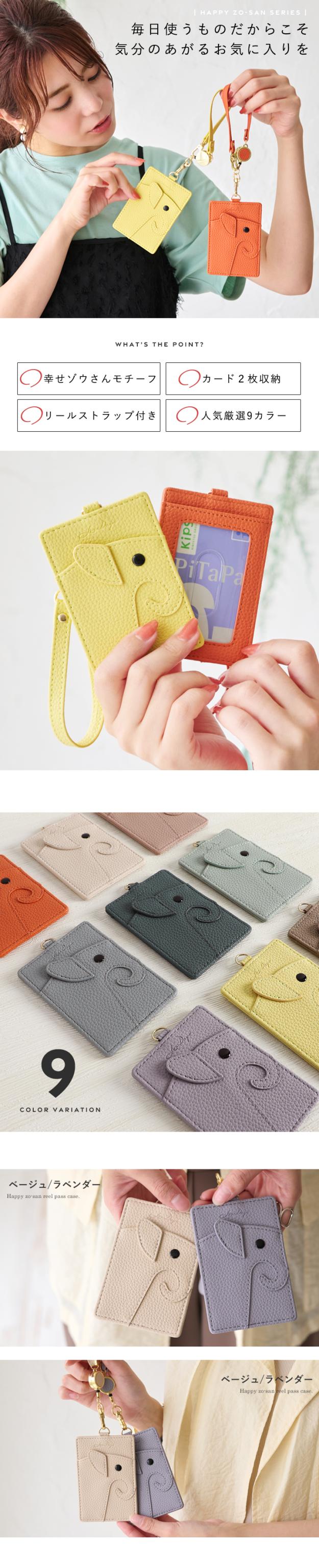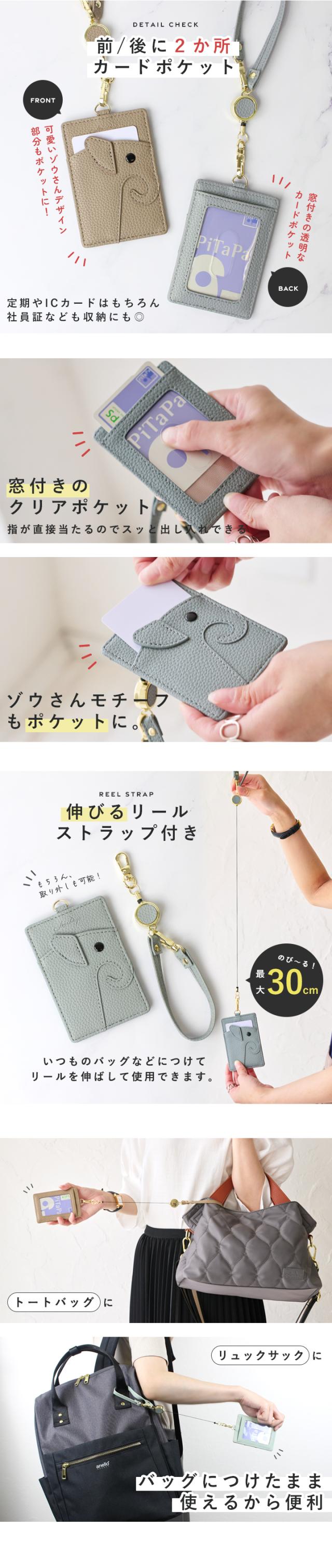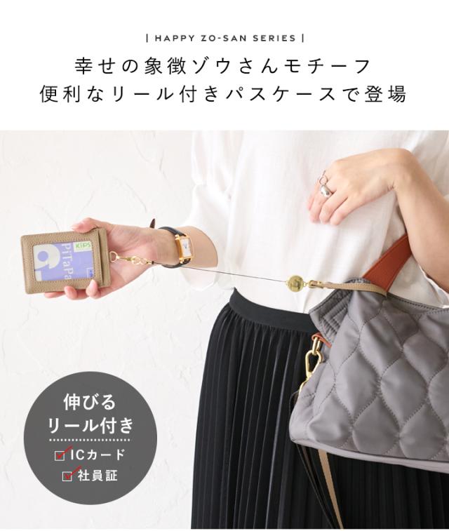 パスケース リール付き レディース メンズ 定期入れ ID ICカード 入れ 2枚 ストラップ カードケース カード入れ 薄型 idカードケース ゾウさん 可愛い 大人 ギフト プレゼント LIZDAYS リズデイズ【lz-66402】