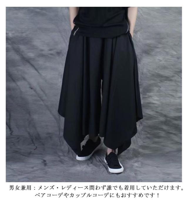大きいサイズ メンズ 変形 ゆったり レディース サルエルパンツ ワイドパンツ サルエルパンツ 袴パンツ アラジンパンツ 男女兼用 春 アシンメトリー 夏 秋 ユニセックス ダンス 和風 和式ズボン ビッグシルエット ボリューム フレア