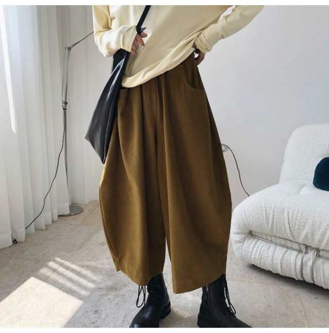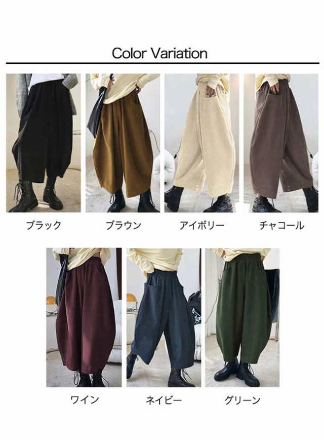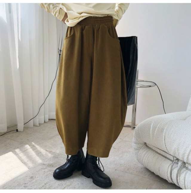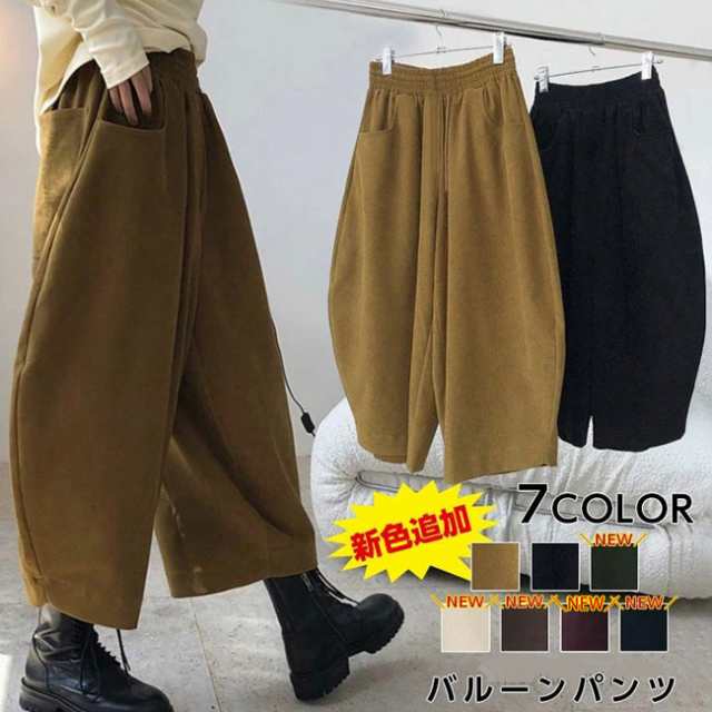 秋新作 パンツ レディース バルーンパンツ 秋 冬 ワイドパンツ ウエストゴム コクーンパンツ ポケット付き 美脚 パンツ ボトムス ゆったり かわいい 大きいサイズ 大人 カジュアル ズボン 無地 着痩せ