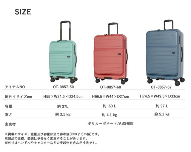 ロジェール LOJEL オルティモ oltimo スーツケース 97L Lサイズ 5-7泊 OT-0857-67 フロントオープン ストッパー 日乃本キャスター 2in1ロック ボトムハンドル 受託手荷物対応