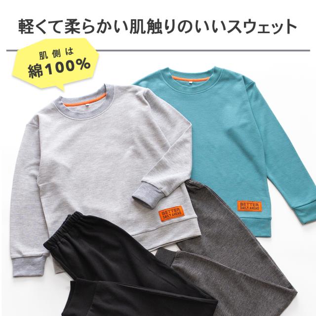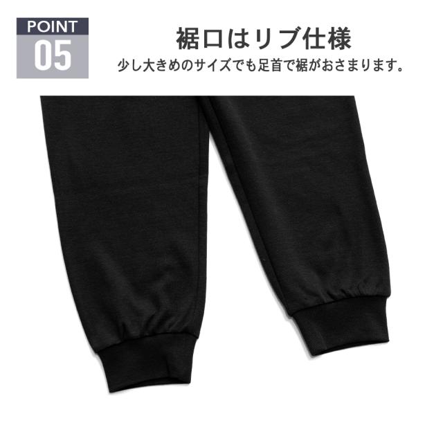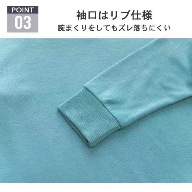 袖口とパンツの裾口はリブなので上にずりあがらず少しサイズが大きめだったとしても大丈夫です。
