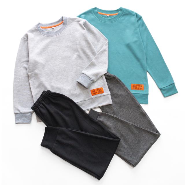 シンプルな無地ベースにポイントカラーのワッペンがかっこいい!滑らかな肌触りのスウェットパジャマです。