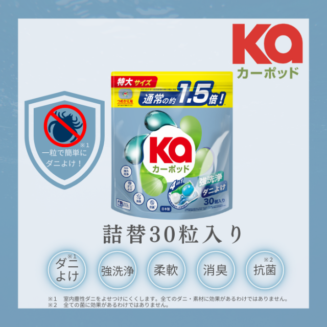 【詰め替え】【韓国1.2億個突破!】30粒入り ダニ除けカーポッド 抗菌プラス 強力洗浄 部屋干し ボール型洗剤 ジェル ボール 洗濯洗剤 時短 便利 詰め替え30粒入 日本製 ダニ除け 抗菌 生乾き臭撃退