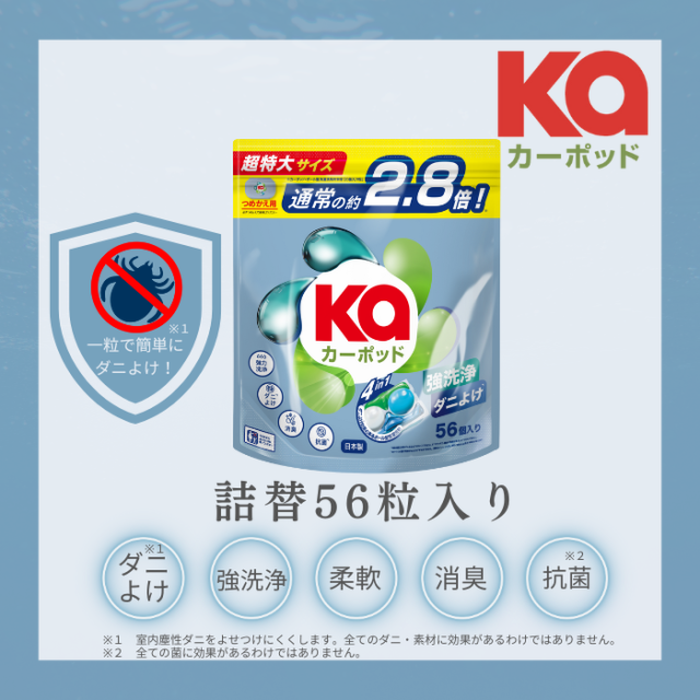 【詰め替え】【韓国1.2億個突破!】56粒入り ダニ除けカーポッド 抗菌プラス 強力洗浄 部屋干し ボール型洗剤 ジェル ボール 洗濯洗剤 時短 便利 詰め替え56粒入 日本製 ダニ除け 抗菌 生乾き臭撃退