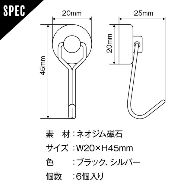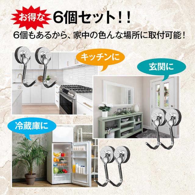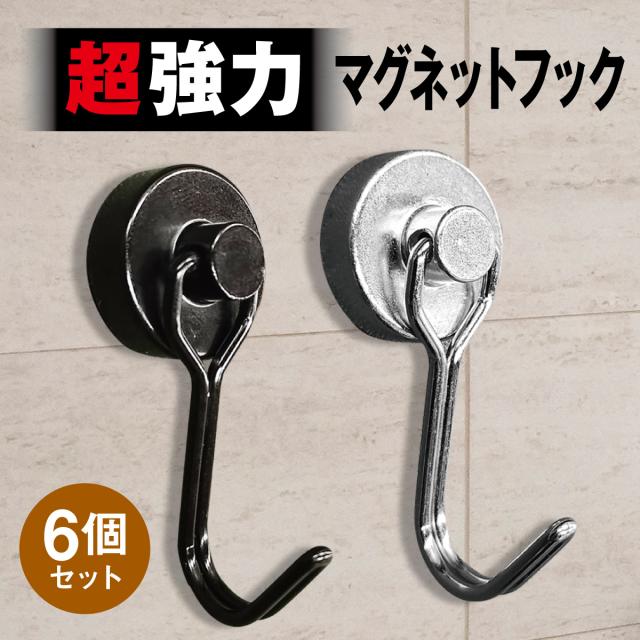 マグネットフック 6個セット 超強力 ネオジム磁石 おしゃれ 北欧 強力 フック ステンレス製 防錆 インテリア 整理整頓 垂直向き最大耐荷重15kg キッチン 玄関 オフィス 台所 デスク 机 お風呂 壁掛け用 m-hook2