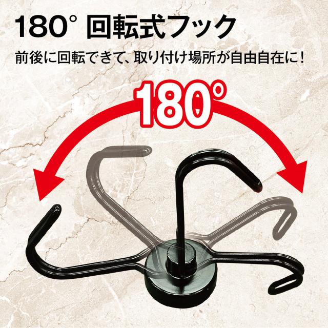 180°回転フックなので、前後に回転ができて、取付け場所に困りません。