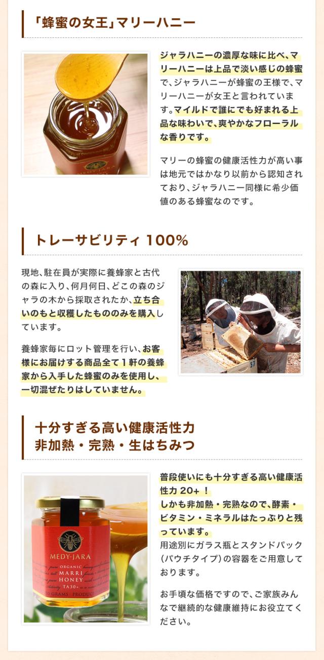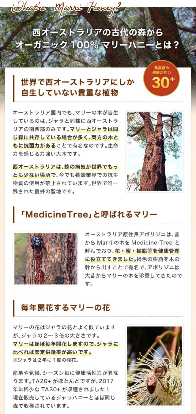 クリーンで安心・安全の西オーストラリアの太古の森に自生するマリーの木。まさしくマリーハニーは天然のサプリメント!是非あなたの健康維持にお役立てください。