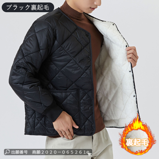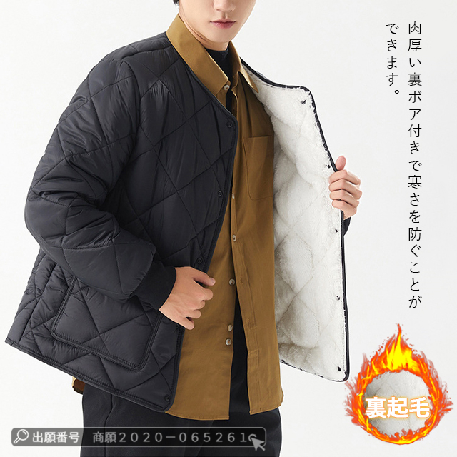 最安挑戦 冬新作 送料無料 新作 ジャケット メンズ キルティング ジャケット 秋冬 裏ボア 防寒 キルティングコート ビジネス ノーカラー フリース 中綿ジャケット 裏起毛 軽量 あったか 防風 保温 冬服 冬物 2types