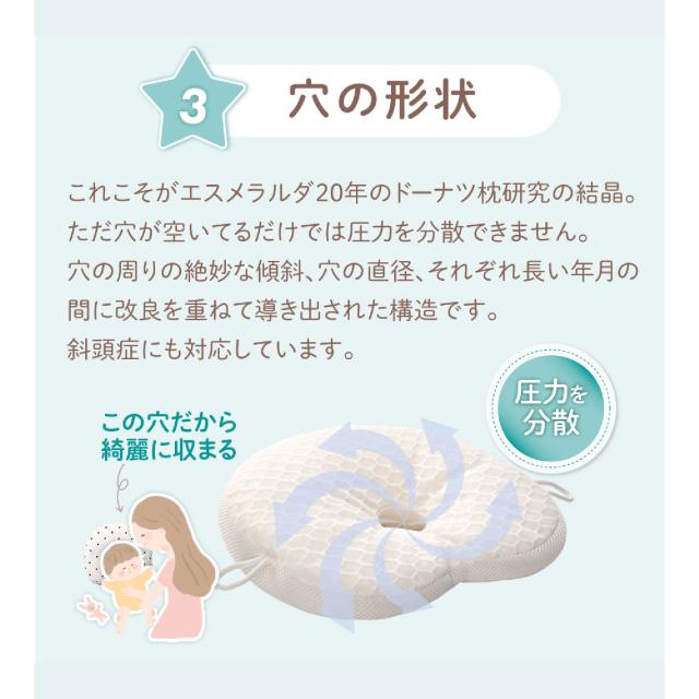 EsmeraldA エスメラルダ ベビー枕 枕 ドーナツ枕 ピロー ベビー 新生児 赤ちゃん 向き癖 丸洗い 呼吸する