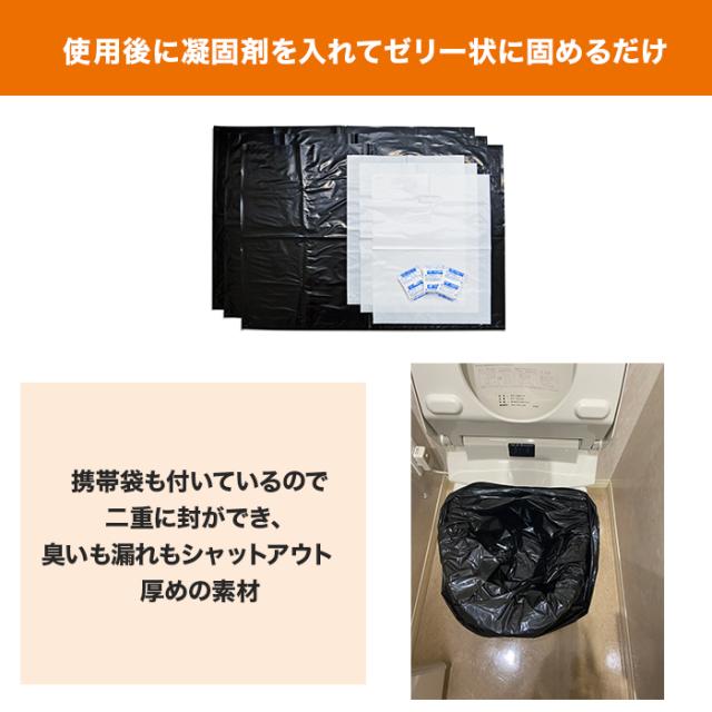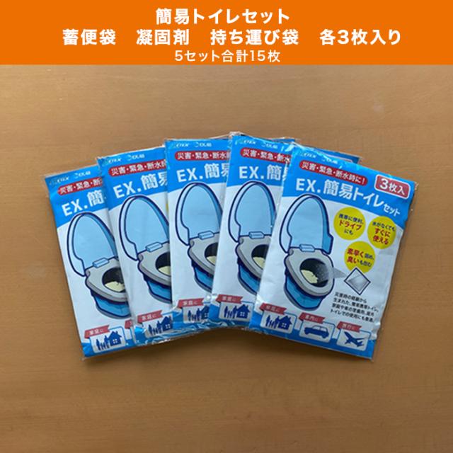 簡易トイレセット(蓄便袋、凝固剤、持ち運び袋 各3枚入り×5セット)