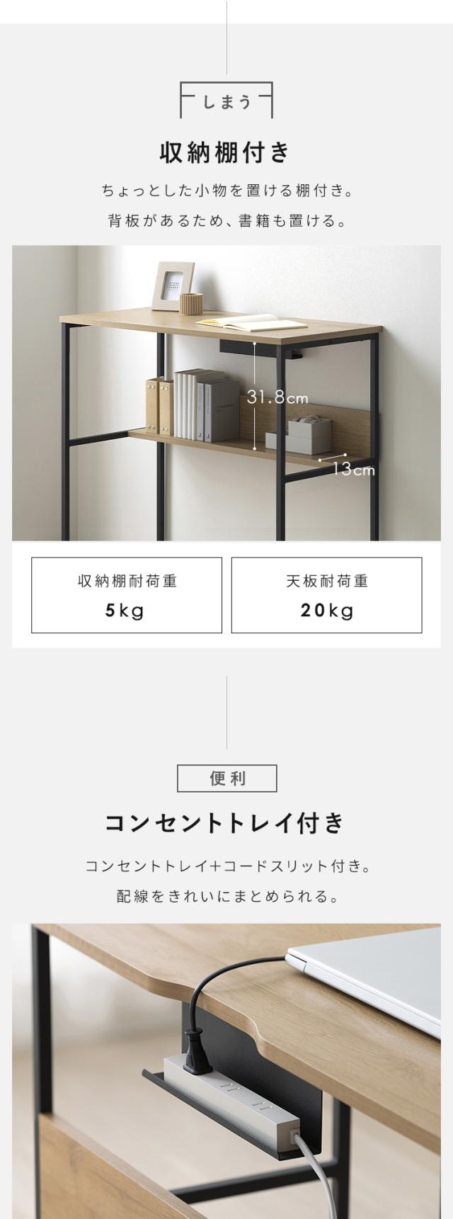 また、コンセントトレイ+コードスリット付きなので、配線もすっきりきれいにまとめられます。