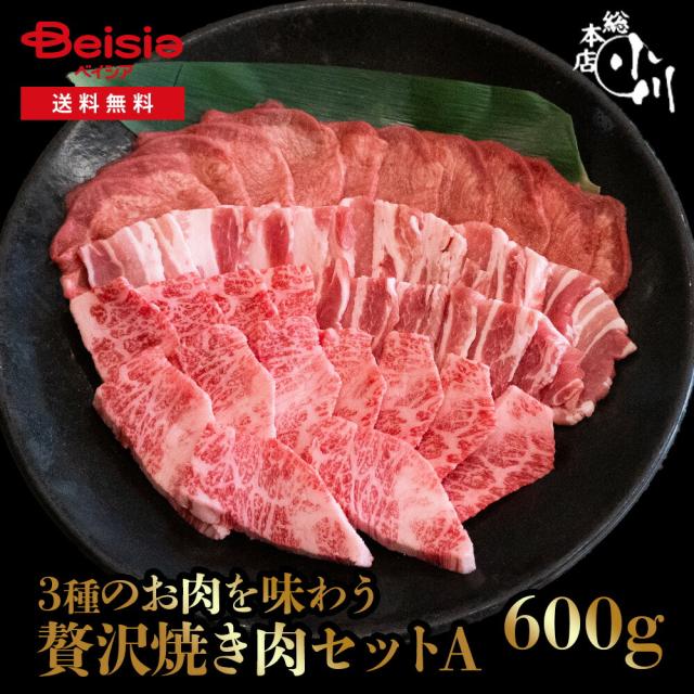 小川畜産総本店 焼肉セットA(合計600g) 冷凍 | 焼肉セット 600g 冷凍 牛肉 豚肉 鶏肉 バーベキュー BBQ 盛り合わせ 家族 友人 お祝い ギフト 贈り物 ホームパーティー