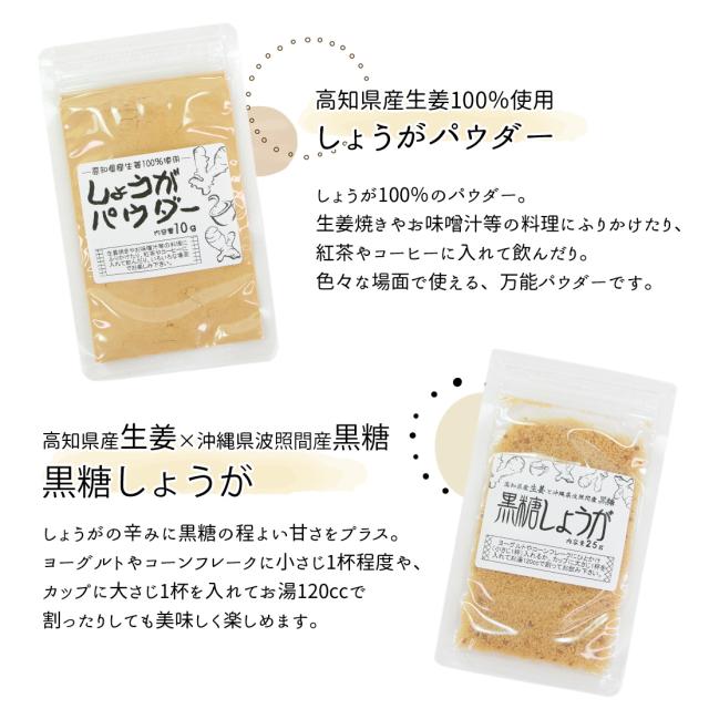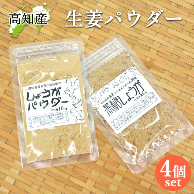 【生姜100%パウダー(2袋)×黒糖入り生姜パウダー(2袋)、4点セット】