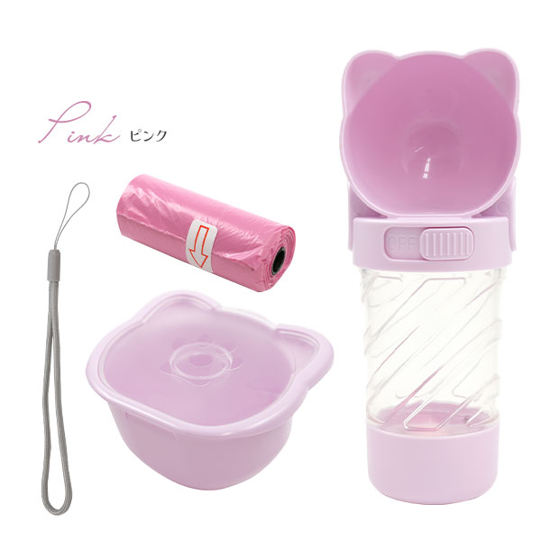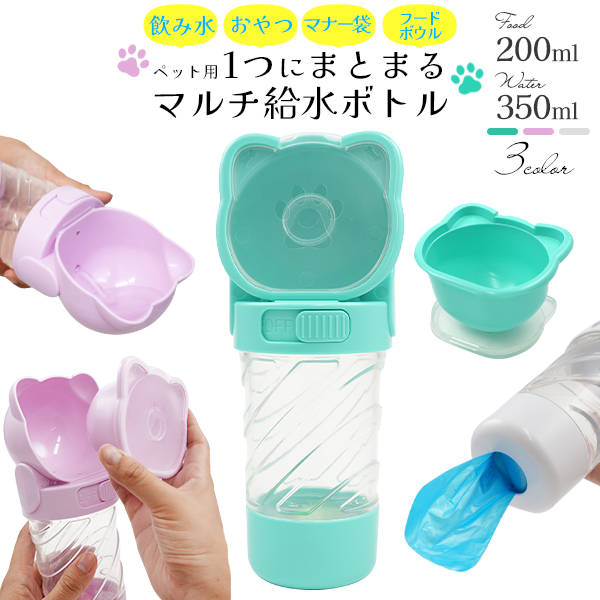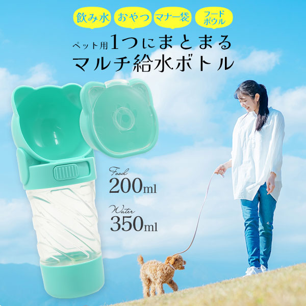 ペット用 マルチ 給水ボトル 3WAY(水 / おやつ入れ / マナー袋入れ)持ち運びに便利 犬 猫 散歩 旅行 お出かけ 車 病院 ペット ウォーターボトル 水入れ お水 ペット用品 そのまま飲める 便利 ストラップ付 送料無料