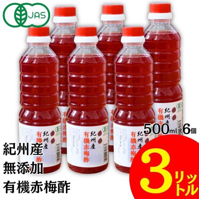 紀州産 梅酢 無添加 竹内農園 梅酢 500ml×6本 3リットル 天日塩 有機赤梅酢 業務用 梅酢 紫蘇梅酢 無添加 有機 国産 赤 南高梅 有機JAS 紀州 和歌山県 オーガニック 塩分 塩 酸っぱい しょっぱい