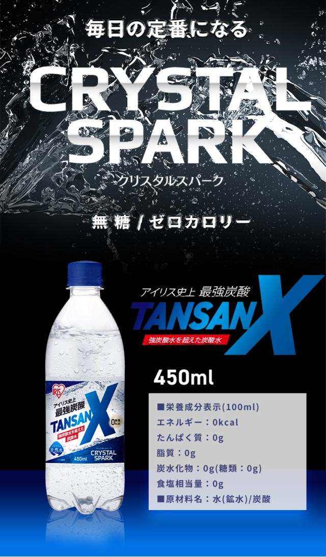 (検索用:炭酸水・450ml・24本・強炭酸水・炭酸・ソーダ・ペットボトル・無糖・まとめ買い・プレーン・割り材・クリスタルスパーク・TANSAN・X・4562403571014・アイリスオーヤマ)