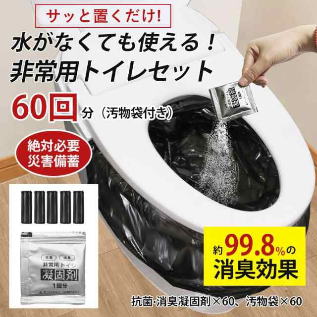 60回分 非常用トイレ 防災トイレ 消臭抗菌 防災用品 防災セット 防災グッズ 非常トイレ 簡易トイレ 携帯トイレ 非常用持ち出し袋 災害 備蓄 避難 凝固剤 防臭袋 アウトドア 介護用 防災 携帯トイレ 台風 洪水 災害時 断水時 簡単使用 長期保存